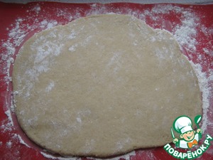 Хорошо подпыляем поверхность на которой будем раскатывать тесто. Толщина теста 1 см.