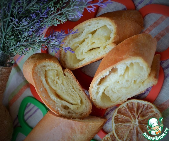 Из-за тугости теста были сомнения и о мягкости самого батона. Но хлебушек получился отличный! Тесто прослаивала смесью сыра бри (размягченного) с зеленью и оливковым маслом. Слои получились тончайшими (на фото видно), корочка - хрустящей и наивкуснейшей. Я смаковала, разбирая ломтики на тонюсенькие слои