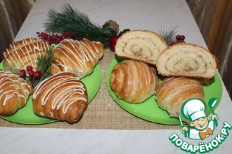 выпечки, оставить еще минут на 30 мин. для подъема. Я выпекала в форме для кексов. Форму смазать маслом. При выпечки у меня булочки лопнули, на этом этапе можно сверху шпажкой сделать прокол. Яйцо взбить, смешать со сливками, за пять минут до выпечки смазать булочки.