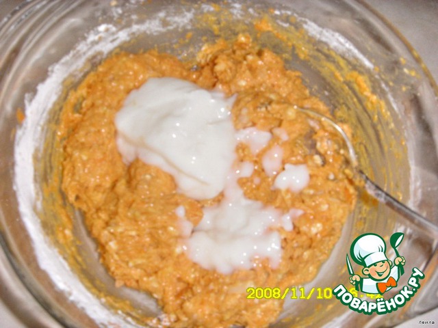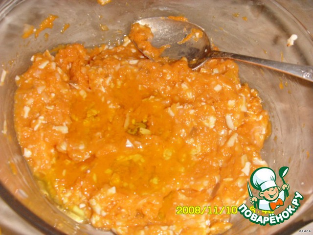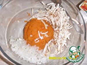 Тёртую тыкву, лук, мелко нарезанный, сыр перемешать.