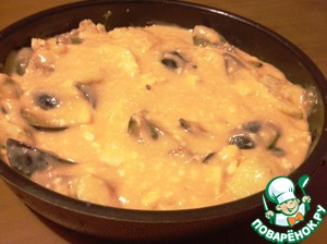 Фрукты нарезать кусочками и перемешать со столовой ложкой муки. -