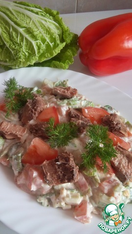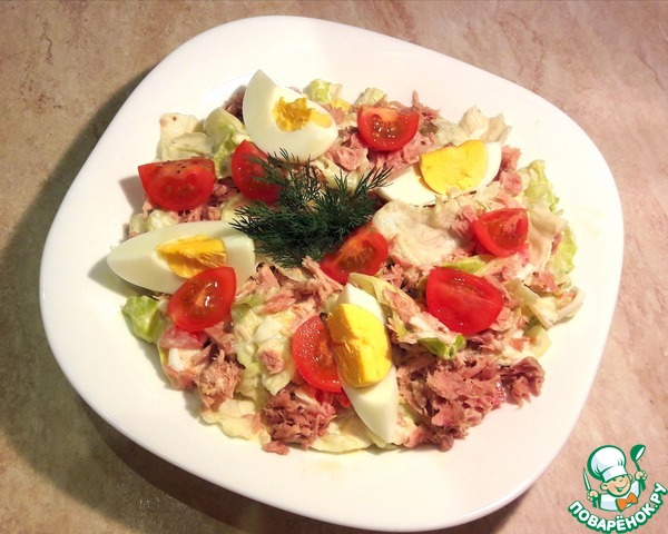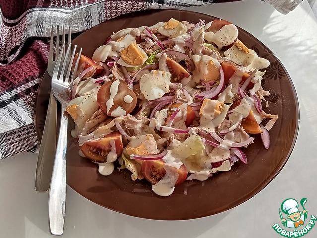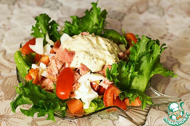 Рецепт «Салат с тунцом и сырной заправкой»: