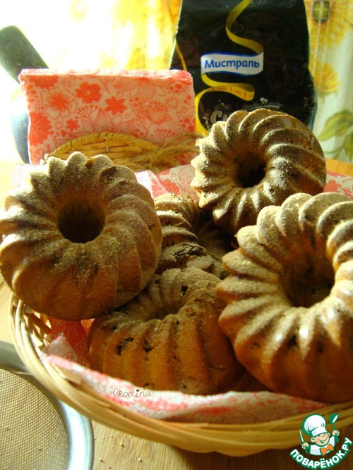 Проверила зубочисткой, вынула из духовки, дала остыть и присыпала сахарной пудрой соединённой с молотой корицей, которую сделала в ступке из сахара Демерара от Мистраль.