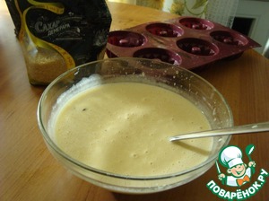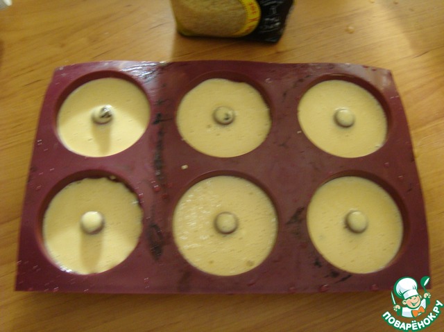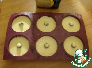 Намочила форму силиконовую и разлила тесто. Поставила на 30 минут в разогретую духовку до 180 С. Ориентируйтесь по своей духовке.