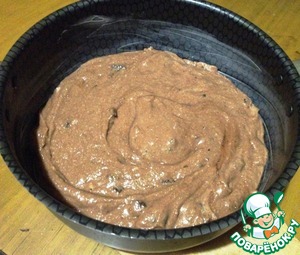 Форму диаметром 20 см смазать маслом, выложить тесто, разровнять. Поставить в разогретую духовку. Выпекать при 180С примерно 40 минут (до сухой зубочистки). -
