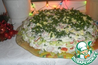 1 слой - выкладываем крабовые палочки. Смазываем майонезом