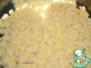 Вот такая кашка должна получится, крупные кусочки разотрите, слегка подсолите, влейте 300 мл воды и 1 ст. л уксуса, перемешайте.