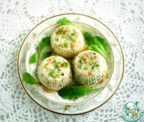 4. Берем силиконовые формочки под кексы (16 шт) и раскладываем салат.