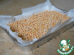 Выложить тесто в форму, формируя бортики. Я использую прямоугольную форму 20х30, форму не смазывала. Наколоть вилкой, застелить сверху бумагой для выпечки и положить груз (специальные шарики или любые бобовые). Выпекать при 180 градусах 20 мин. Выпекаем основу для тарта не до готовности, надо только слегка "подпечь".
