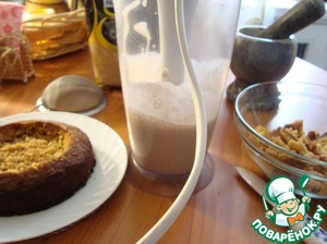 Сахар Демерара разбиваем в пудру. Я сделала это в ступке и соединяем со сметаной в блендере.