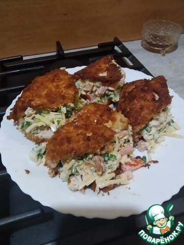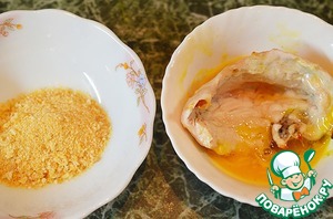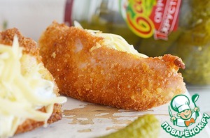 Хрустящие "кармашки" из куриной грудки, начиненные нежным соусом с маринованными огурчиками и сыром - лакомство для всей семьи. Потрясающий вкус, интересная подача, несложное приготовление, - всё делает это блюдо, достойным внимания каждой хозяйки.