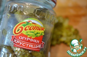 Я в своих блюдах использую маринованные огурчики "6 СОТОК". Огурчики этой фирмы очень вкусные, хрустящие, кроме того, они приготовлены с пониженным содержанием уксуса.