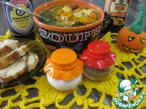 Рецепт этого супа я нашла лет 10 назад в предновогоднем выпуске какого-то журнала, - заинтересовал он меня сразу своим составом, - сварила и ни капельки не пожалела! Тогда даже мои привереды дочки оценили его на "отлично"! Теперь в рамках конкурса вспомнила про него, решила повторить и поделиться с вами, - может кому придется по душе! Соевый соус добавил супу новую вкусовую нотку! Этот суп можно готовить как мясной вариант, так и постный, подавать можно и в виде супа-пюре или оставить как есть, - решать вам, но в любом виде он очень вкусный, сытный и необычный!