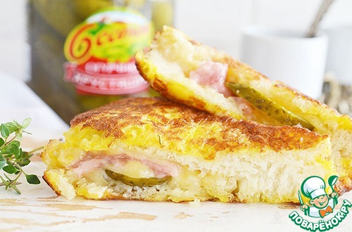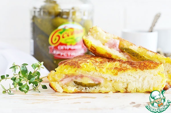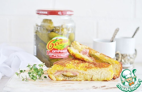 Хрустящий жареный тост с начинкой из ветчины, хрустящих маринованных огурчиков и нежного тягучего сыра, - что может быть лучше на завтрак? А если Вы поймете, как просто готовится эта вкуснятину. то такой тост станет Вашим любимым блюдом!