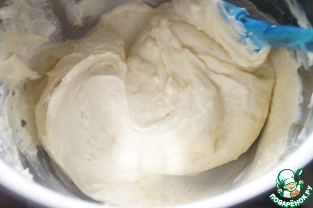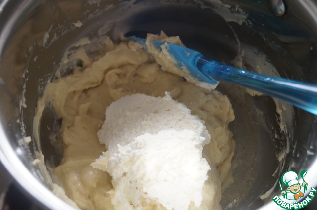 Аккуратными движениями лопатки сверху вниз соединить сливки и крем в единую массу.