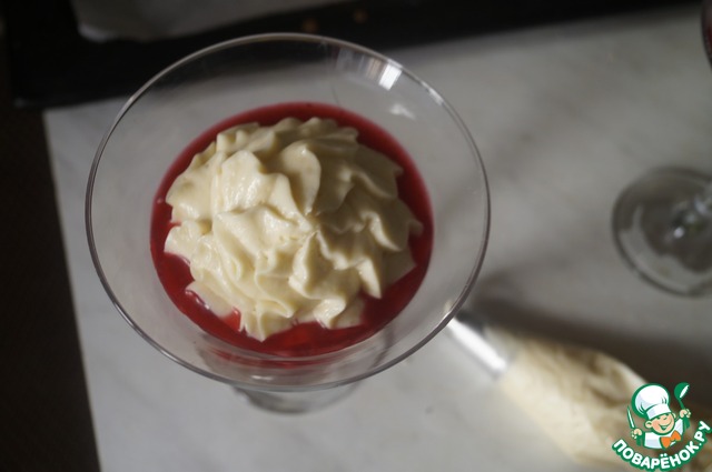 Крем поместить в кондитерский мешок с насадкой звездочка. Отсадить крем в фужеры, прямо в соус.