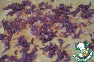 Далее слой вареного картофеля. Предвидя вопросы, добавлю, что картофель у меня фиолетового цвета.