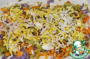 Затем слой натертого яйца и сеточка майонеза.