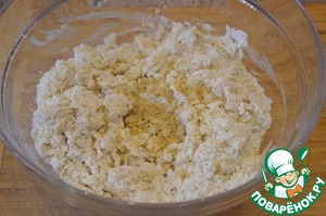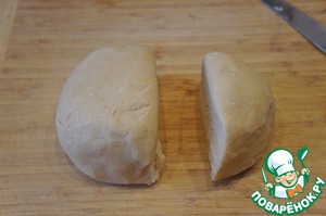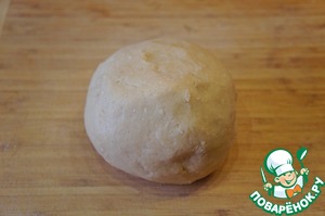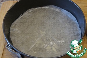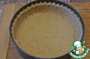 Большую часть раскатать в круг, выложить в форму и распределить руками, оформив высокий бортик.