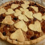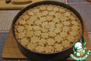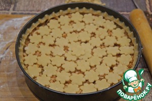Оставшееся тесто раскатать, вырезать из него кружочки, цветочки, сердечки или что вам больше нравится и уложить поверх яблок.