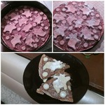 Форму брала сначала 24-25 см,но теста оказалось мало для такой формы,взяла 22 см диаметром и вот тут уже всё сошлось,как говорится