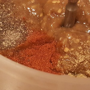 Добавить к баклажановой массе специи.