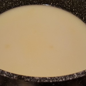 В сотейник влить сливки, добавить 100 мл воды и довести до кипения.