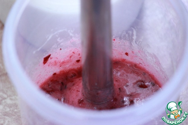 Затем добавляем молоко и также тщательно перемешиваем блендером.