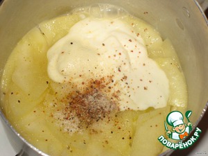 Затем добавить соль, перец, травки, сметану и потушить еще 1-2 минуты. Снять с огня и немного остудить.