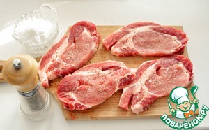 Куски свинины слегка отбейте, посыпьте солью и перцем