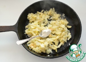 На сливочном масле слегка потушите до мягкости лук, яблоки и корень петрушки (около 15 минут)