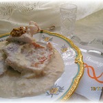 Данный рецепт я нашла в вырезках из журналов, которые мне достались от свекрови. Допускаю, что данное блюдо является несколько искажённым вариантом "апфелькрена".