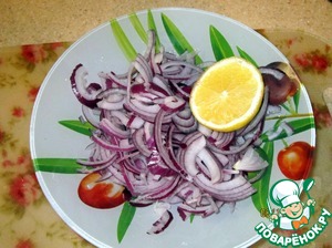 Выжимаем сок из половинки лимона, посыпаем 1/2 ч. л. соли и оставляем на 15-20 минут.