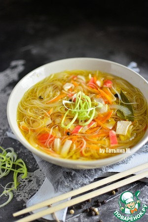 Рецепт «Суп с рисовой лапшой и крабом»: