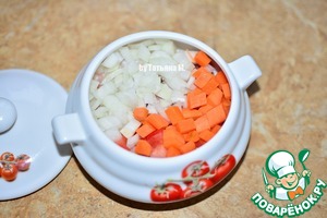 В жаропрочную посуду (горшок) выложить чечевицу;