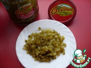 Нарежем меленькими кубиками 5 маринованных хрустящих огурчиков ТМ "6 соток".