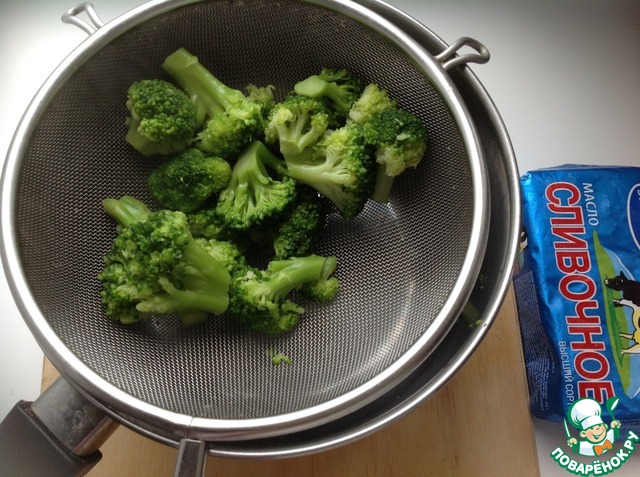 Брокколи отварить до готовности, откинуть на сито и обсушить.