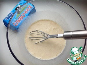 Приготовить заливку. В миску добавить яйца, сметану, сливки и взбить венчиком до однородной массы, особо не усердствуя.
