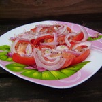 Как только его не называют: ачичук, аччик-чучук, ачик-чучук, ачучук, и каждое название считается правильным, поэтому и не буду ни с кем спорить. Воспользуюсь терминами, которыми пользуется знаток, гуру восточной и, в частности, узбекской кухни Сталик Ханкишиев. Он упоминает два названия этого салата: ачик чучук и шакароб. У нас в кафе подают этот салат с огурцами, однако узбекский шакароб, как и ачик-чучук, делают без огурцов. Кстати, шакароб, например, с таджикского, дословно переводится как «сладкая вода», наверное, потому, что готовится он без заправки: лук с помидорами выделяют свои соки, которые и дают сладость. Классически он подаётся к плову, но, конечно, подойдёт ко всему. К жареной рыбе или мясу, да просто к картошке – улёт-башка)))