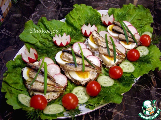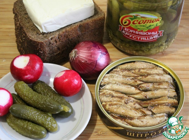 Ингредиенты для «Норвежский бутерброд со шпротами»: