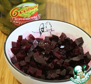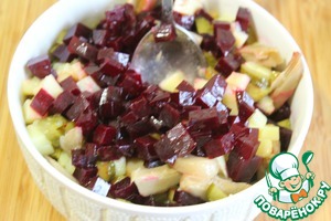 Очистить свеклу, порезать на небольшие кубики, полить 1 ст л растительного масла и перемешать.