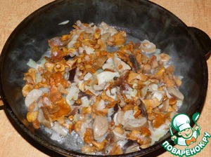 Обжариваем грибы с луком, немного подсолив. -
