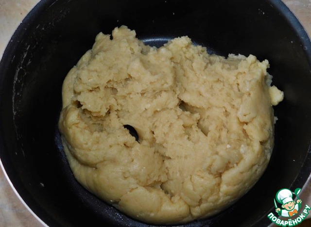 Затем вбиваем в тесто яйца по одному. Тесто должно получиться эластичным, слегка стекающим с венчика, но держащим форму.