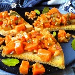 Наивкуснейший салат, скажу я вам! Пикантный, сладко-кисло-чуть соленый, с тонким привкусом копчености- богатый вкус!!! Подается на кусках цельнозернового хлеба. Отличная закуска к пиву и на пикник отлично!)Пробуем?