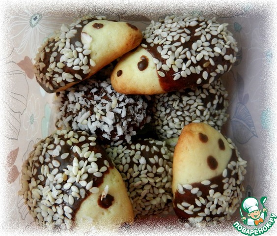 Вот мои ёжики, кокосовую стружку ребенок не любит, поэтому сделала половину с кунжутом, половину с тёртым белым шоколадом. Печеньки получились не только красивыми, но и очень вкусными!!!!