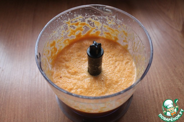 Отваренную морковь вместе с молоком измельчить в блендере. Остудить.