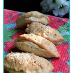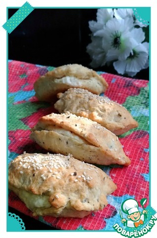 Пирожки смазать желтком и посыпать кунжутными семечками.