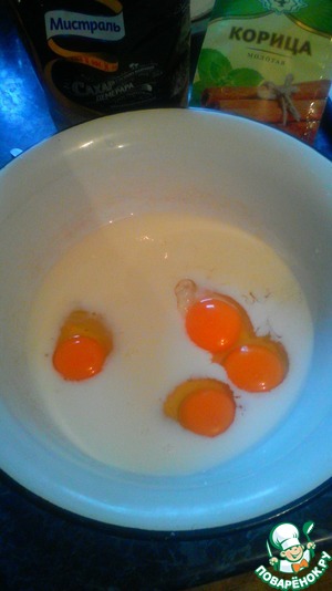 Смешайте в миске сливки и яйца с помощью миксера или венчика