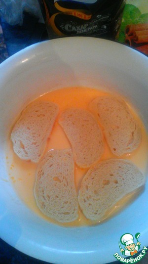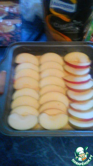 Пока хлеб мокнет, нарежте яблоки плоскими кусочками