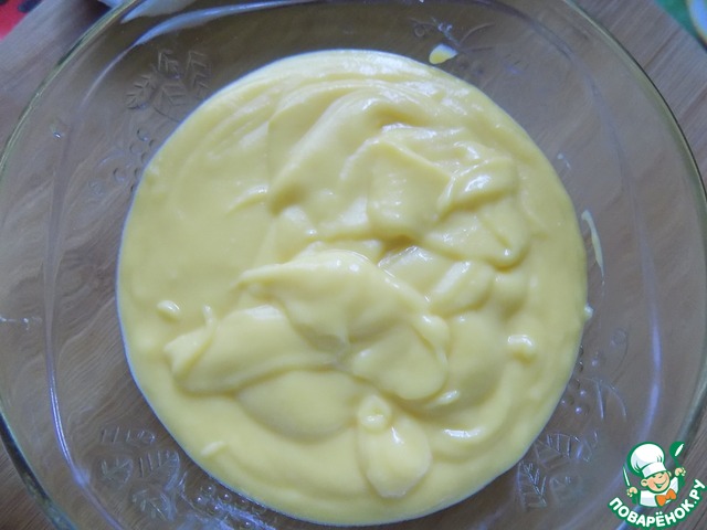 Поставить смесь на водяную баню и, непрерывно помешивая, довести до загустения. Поставить емкость с заварной основой в посуду с холодной водой и продолжать помешивать до остывания. Если образовались комочки, протереть крем через ситечко.